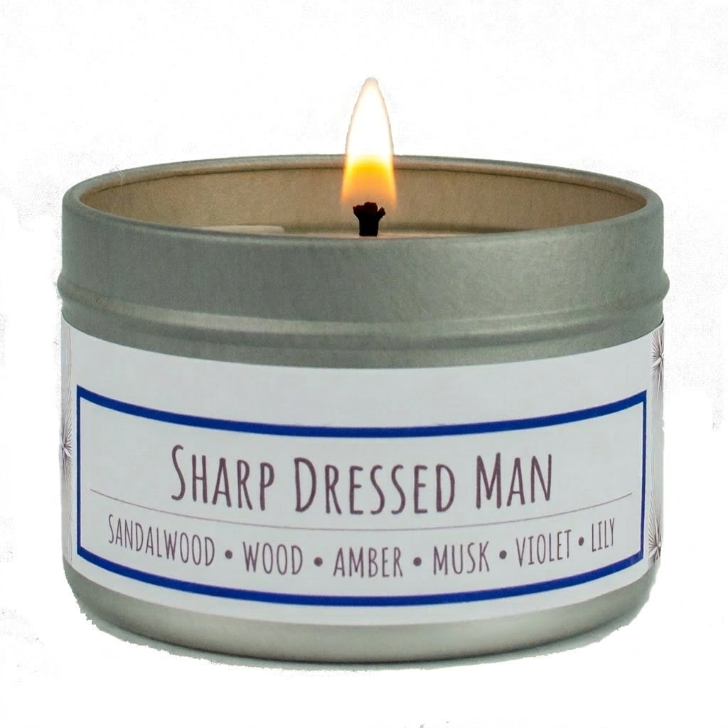 Sharp Dressed Man scented 3 oz. soy candle in travel tin - FKA Santal